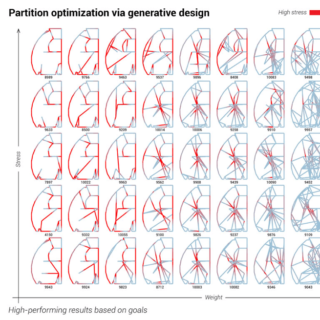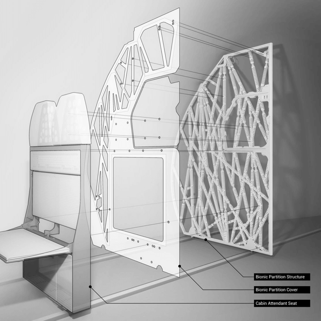 The software, developed in collaboration with Airbus, and New York-based architectural firm The Living enables the design of novel bionic airplane parts. A new airplane partition, created through a combination of generative design, 3D printing, and advanced materials is almost 50% lighter and stronger than current designs. This weight savings translates to fuel savings and carbon emission reduction.